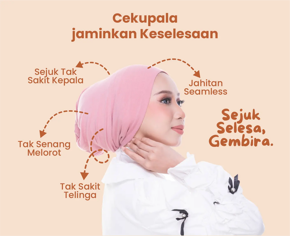 Direka dengan potongan yang tidak terlalu ketat untuk memastikan tiada sakit kepala walaupun dipakai lama. Stretchable, mudah dipakai dan menyesuaikan bentuk kepala dengan selesa.