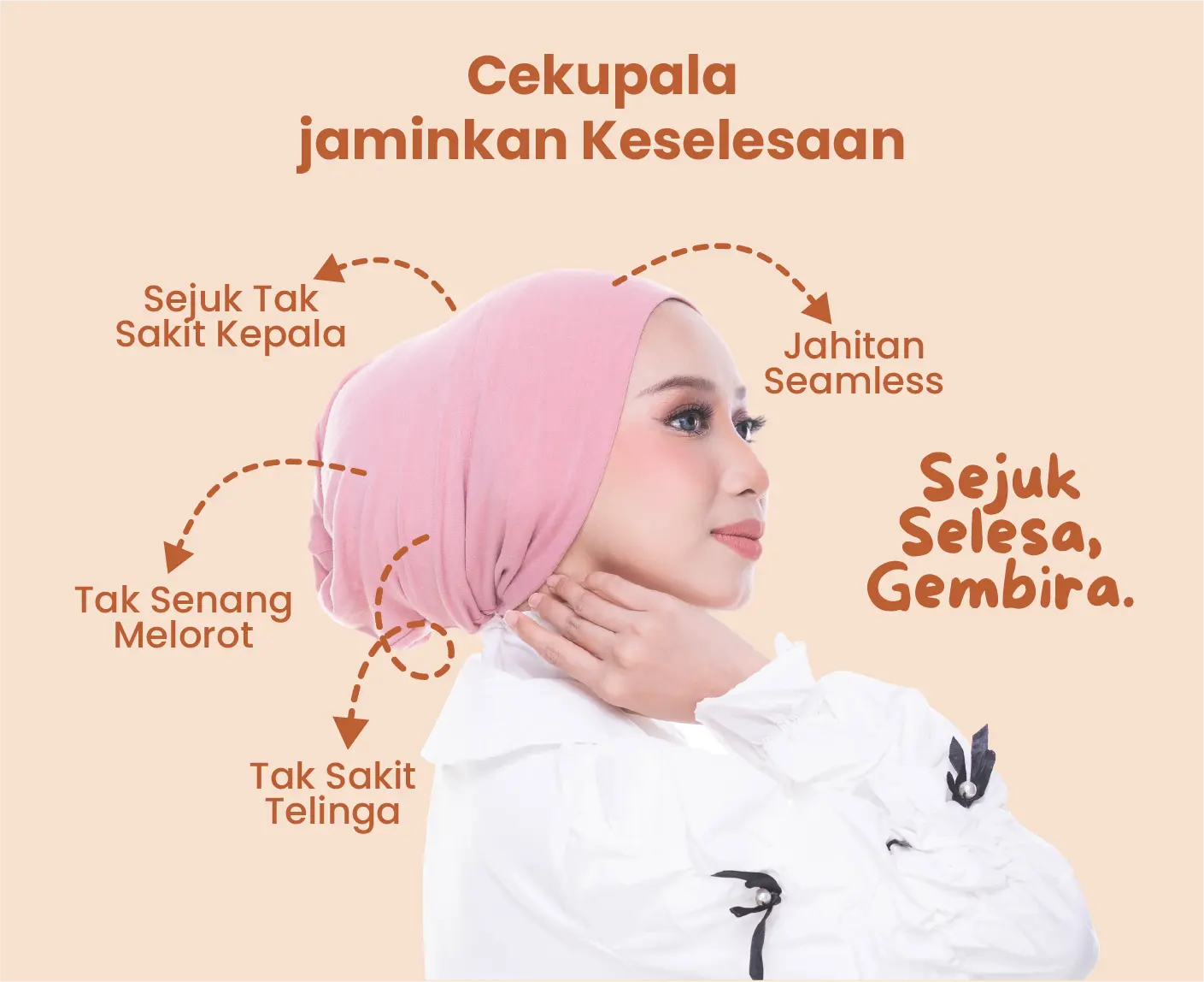 Tidak licin & tidak melorot, sesuai untuk semua jenis tudung, Rekaan yang stay in place, jadi tak perlu sentiasa betulkan sepanjang hari
